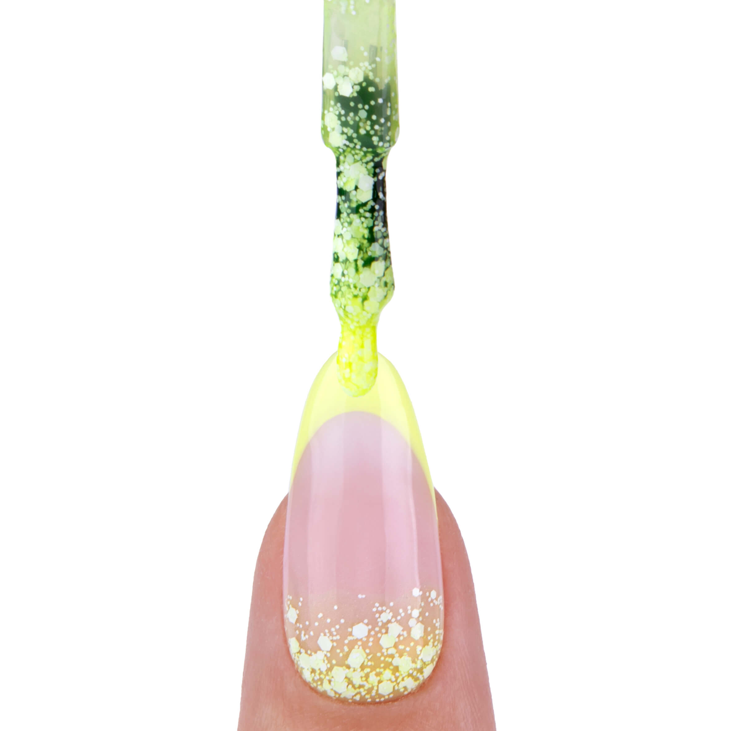 Drobinki zamknięte w lakierze dodają mu wyjątkowego blasku, przypominając iskry tańczące na powierzchni.